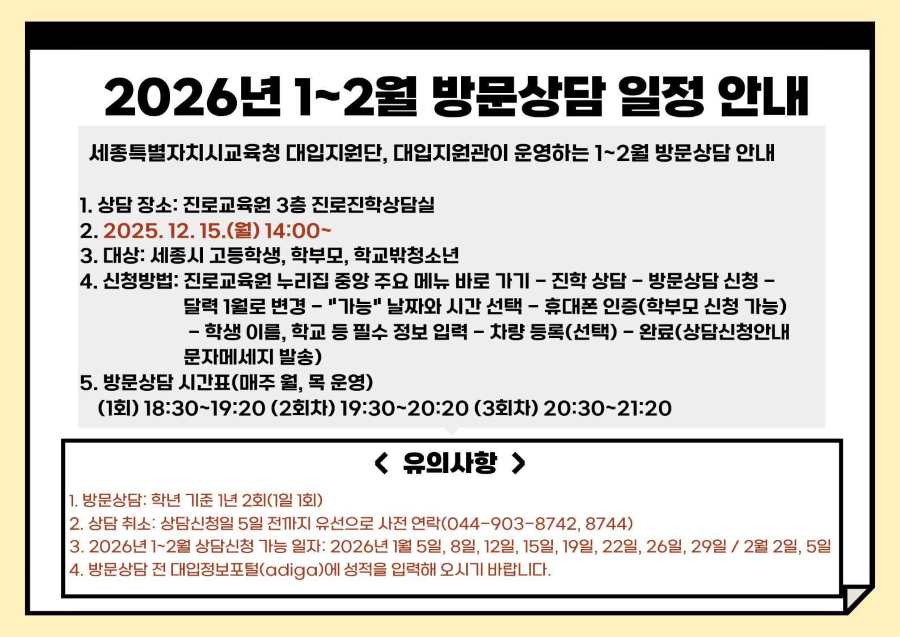[안내] 2026년 1~2월 방문상담 신청 안내