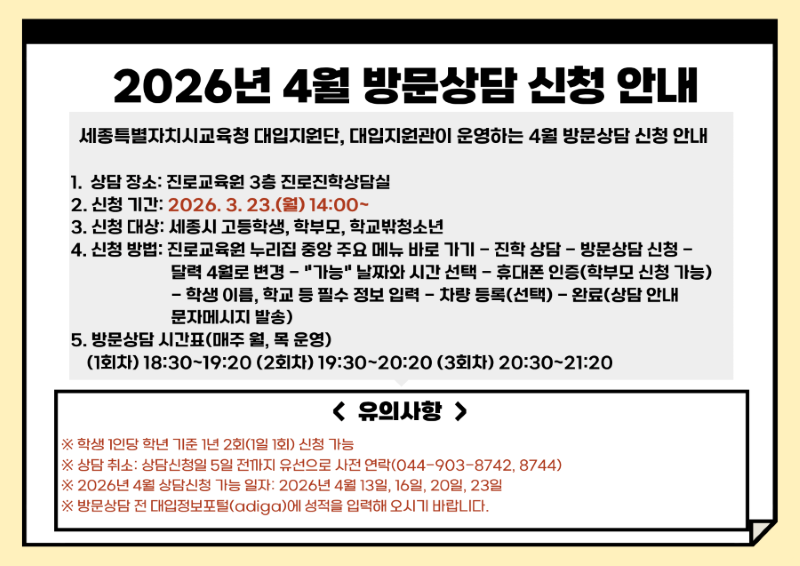 [안내] 2026년 4월 방문상담 신청 안내